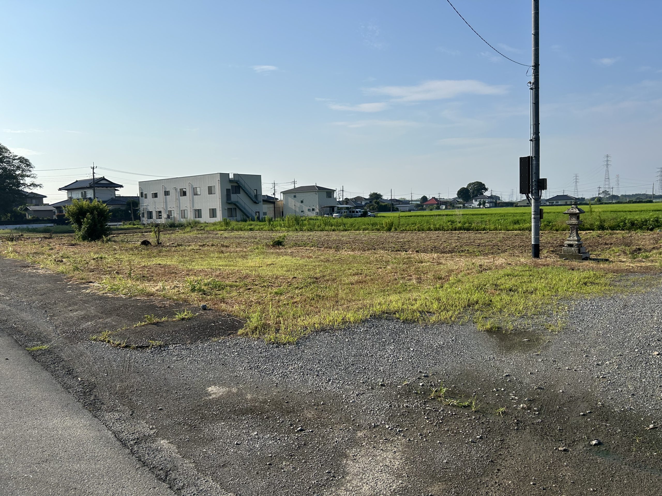 新たな神社の地は、広々とした田園風景の中にあり、澄んだ空と風が気持ちよく通り抜ける清らかな場所です。